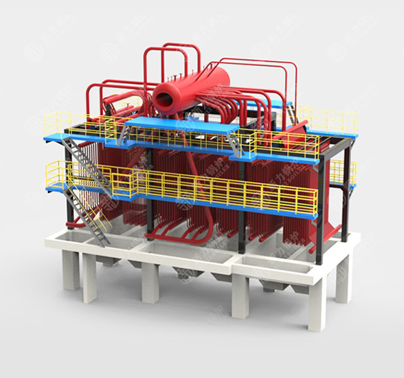 鍋爐采用臥式隧道直通式布置,能利用灰塵自重進行自動清灰,保持受熱面的清潔,提高鍋爐換熱效率。鍋爐采用特殊的密封裝置,降低鍋爐的漏風,提高了鍋爐的效率。因煙氣橫向沖刷受熱面,傳熱效果好,傳熱系數(shù)高